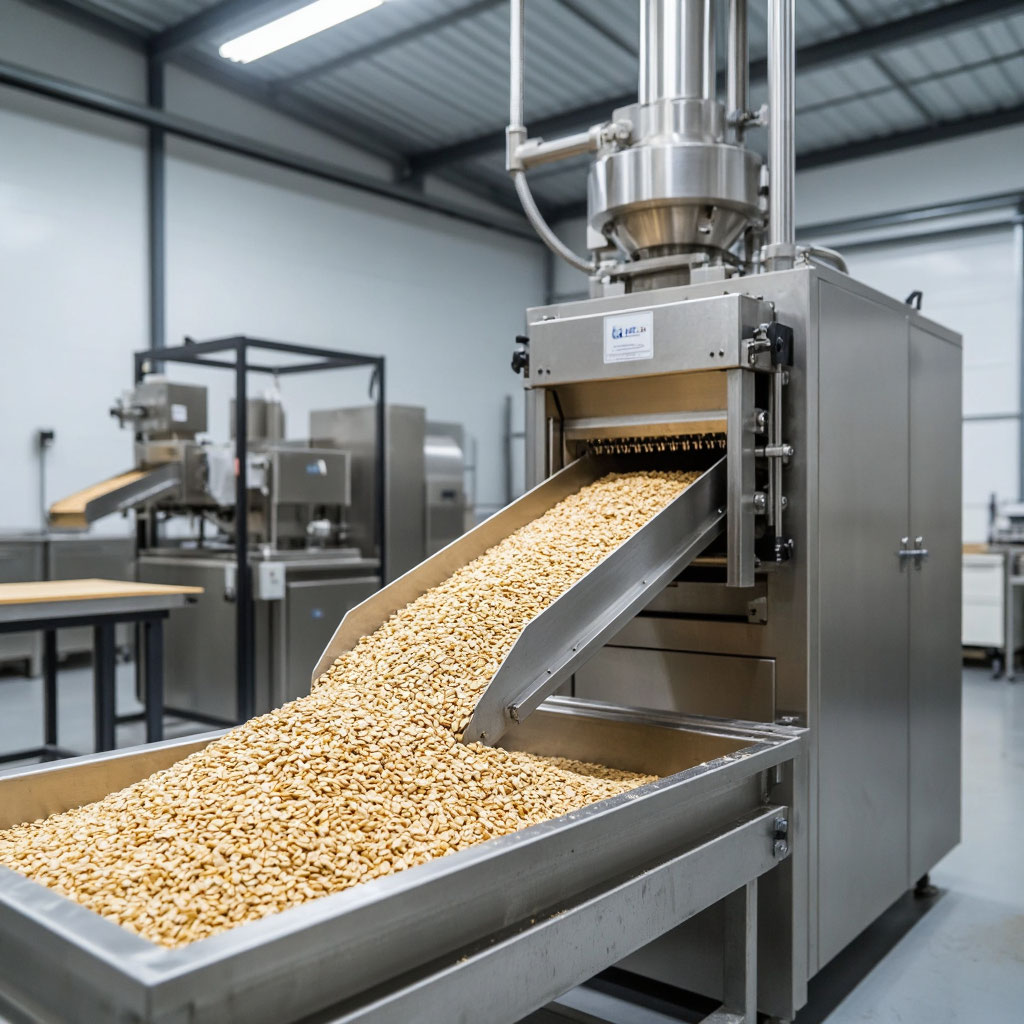 - Смеситель. Предназначен для смешивания готовой карамели и жареного ядра подсолнечника (козинак). При смешивании каждая зерновка должна обволакиваться карамелью. Получается козиначная масса.